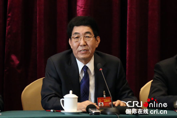 全国人大代表、吉林省委书记巴音朝鲁在会上。易成晨 摄