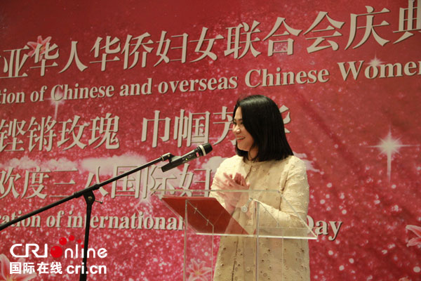 陈镁会长在“三八”国际妇女节庆典上致辞。