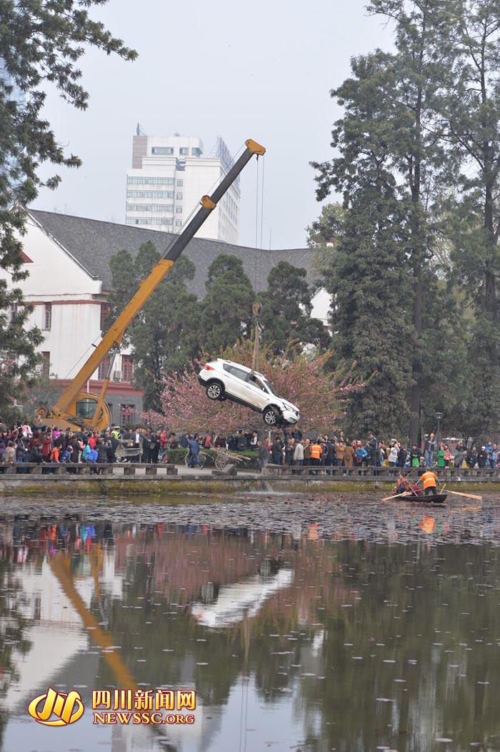 越野车冲进四川大学荷花池 致4人受伤(组图)