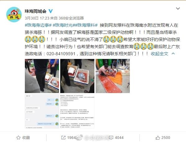 珠海疑现当街宰杀售卖海豚 涉事渔民已被传唤