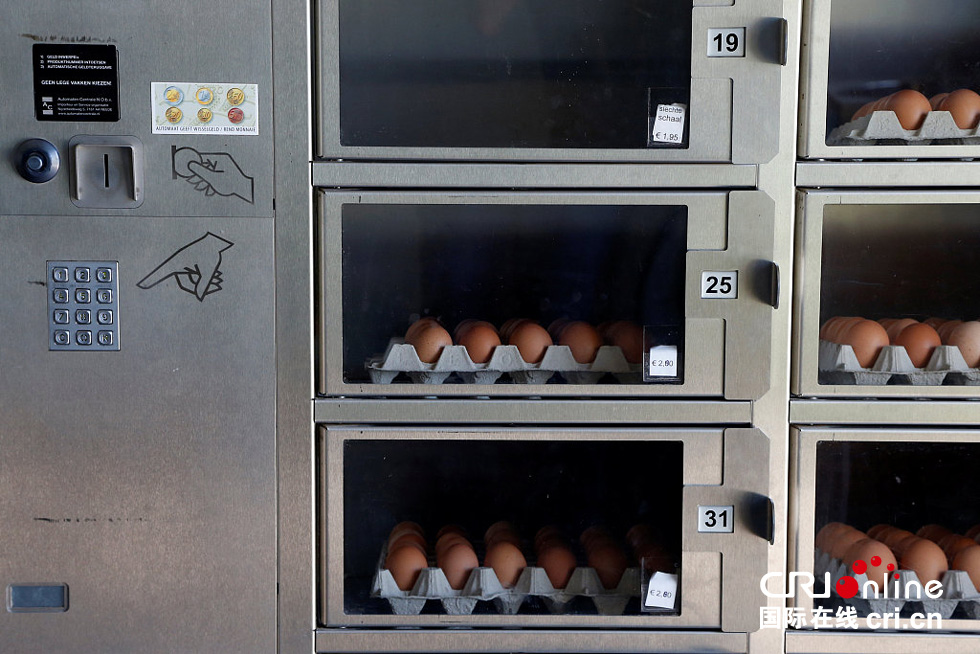 当地时间2017年8月7日,荷兰卢特伦,自动售货机里的鸡蛋。图片来源:视觉中国