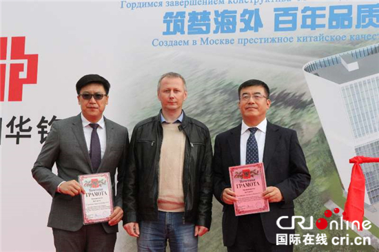 莫斯科中国贸易中心封顶 "中国速度""中国品质"受赞誉