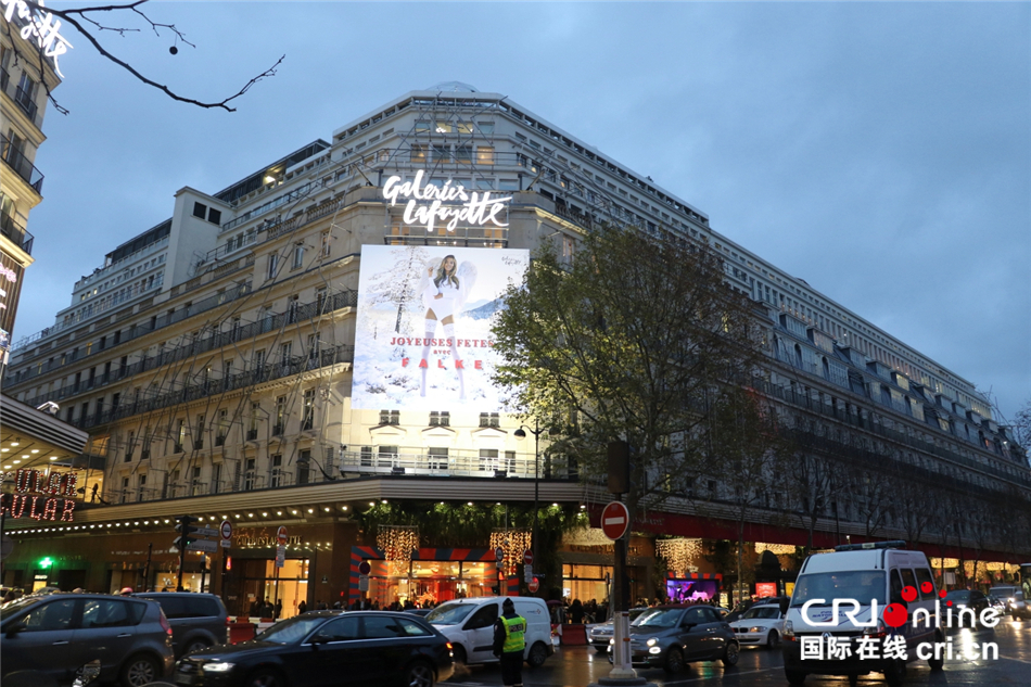 临近圣诞的老佛爷百货门前总是车水马龙
