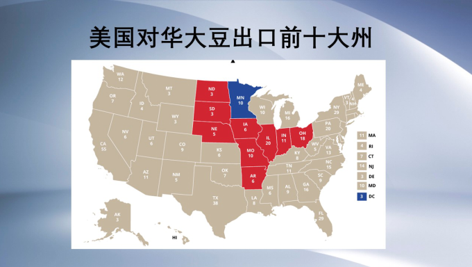 原因是:过去4年美国大豆生产前10位的州是伊利诺伊、艾奥瓦、明尼苏达、内布拉斯加、印地安纳、密苏里、俄亥俄、北达科塔、南达科他和阿肯色。这10个州的大豆生产占美国总产量的95%。2016年美国大选中,这10个州中的9个投票支持特朗普。换句话说,受大豆贸易冲击严重的几个美国农业州基本都是共和党票仓。