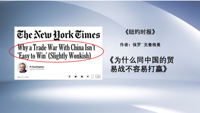 《纽约时报》的标题则是《为什么同中国的贸易战不容易打赢》,文章指出:贸易战是双输,看看美国股市近期的大幅波动就能明白,金融市场并不喜欢贸易对峙。