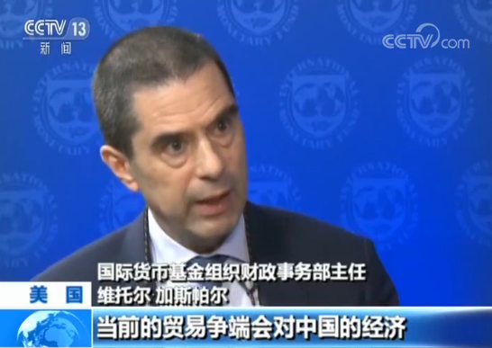 国际货币基金组织财政事务部主任 维托尔·加斯帕尔:从财政政策角度讲,中国确实有足够财政空间来解决矛盾,中国已经意识到了,当前的贸易争端会对中国的经济造成一些负面影响,但部分影响可以被中国自身积极的财政政策抵消,我们认为这些财政政策是正确恰当的。因为中国有足够的空间,来调和贸易争端对其整体经济的影响,这同时也对中国经济再平衡十分重要。