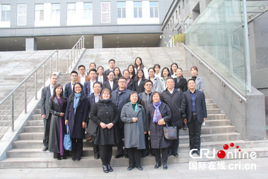参加俄语交传组比赛的选手与评委、组织者合影。摄影:李俊翔
