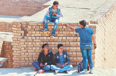 在巴格达郊区玩耍的当地少年。本报记者 周 輖摄