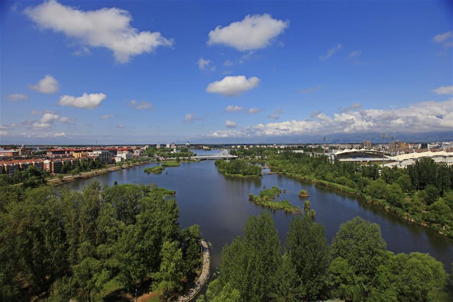 北京延庆妫河两岸风景秀丽(5月30日摄)。 新华社发