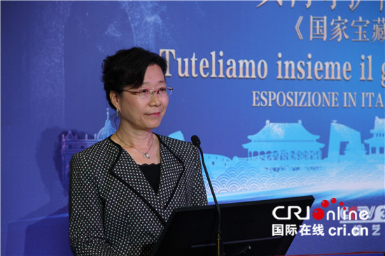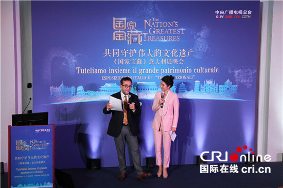 展映开始前,中国驻意大利大使馆公使衔参赞郑璇在致辞中说,《国家宝藏》打破了文物考古类节目略显枯燥的传统叙述方式,通过身着古装的人气明星演绎文物的传世故事,让观众有机会“穿越”到每件珍宝当时所处的不同古老年代,品味文物的前世今生。她指出,讲述中国文物是对中国历史的理解与尊重,探究中国文物是对中华文化的传承与发扬,而开展文物保护交流合作是中意人民友好的象征,更是不同文明包容互鉴的具体体现。此次文化推介活动正是立足于这一初衷,必将进一步推进中意人文交流,促进两大文明古国和人民之间的深度了解和互学互鉴。