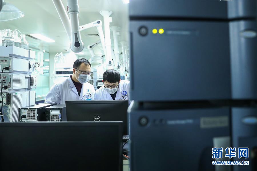 2月14日,工作人员在悦康药业集团药物研究院内检测稳定性样品。