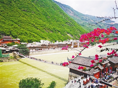 10月2日,四川省甘孜藏族自治州,游客在参观泸定桥。 本报记者 王明峰摄