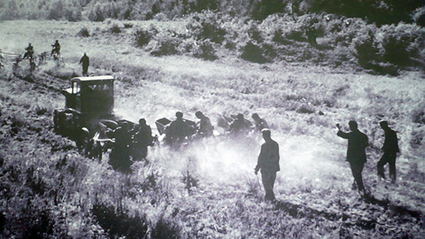 总场知情后,派了一辆大卡车送行,卡车前面是一辆55马力的链轨拖拉机推雪开道。前面推开了路,后面的路又立刻被狂风卷起的雪埋上。那次,走了一整天,才挪出4公里路。拖拉机掉进雪坑,汽车抛锚。路走不动了,家回不了了。六姐妹含泪望望远方的家,一只手拉着另一只手,踏着深深的雪,摔倒了,再爬起来,眼里委屈的泪花,想掉下来,又憋回去。就这样,一点点摸着黑,返回了林场。