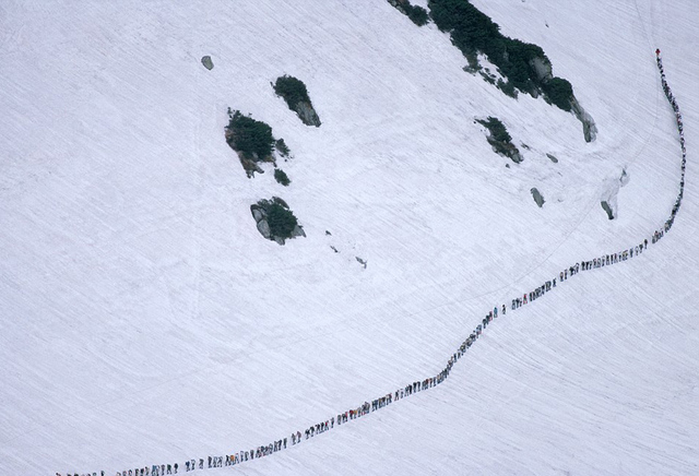 在室堂平(Murodo-daira)附近海拔2450米处,道路两侧堆有近20米高的巨大雪墙,被称为“大雪谷”。今年,雪墙下的漫步活动定于4月16日开始,到7月雪墙融化之前,游客都可在“大雪谷”中徒步穿越极有气魄的雪廊。