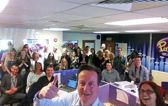 卡梅伦用自拍杆与选民合影 展示潮流范儿