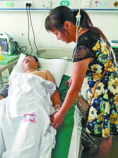 夏某的妻子照顾病床上的丈夫。