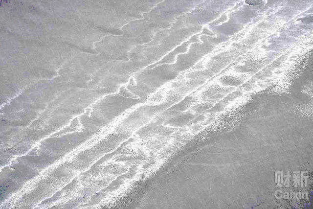 8月18日上午,天津港“8·12”特别重大火灾爆炸事故所在区域下起中雨,随后路面出现不同程度的白色泡沫。摄影:沈湜