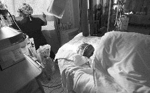 病床上的孩子。摄影 石天蛟