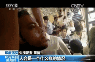 试想,如果是在早上八九点或者是晚上下班的时候,人会是一个什么样的情况。大家总是平时有印象,就是印度人身体是在车厢外面,从这里也能看到。
