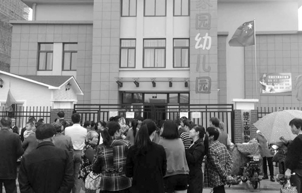 家长中午聚在幼儿园门口等待接孩子回家吃饭