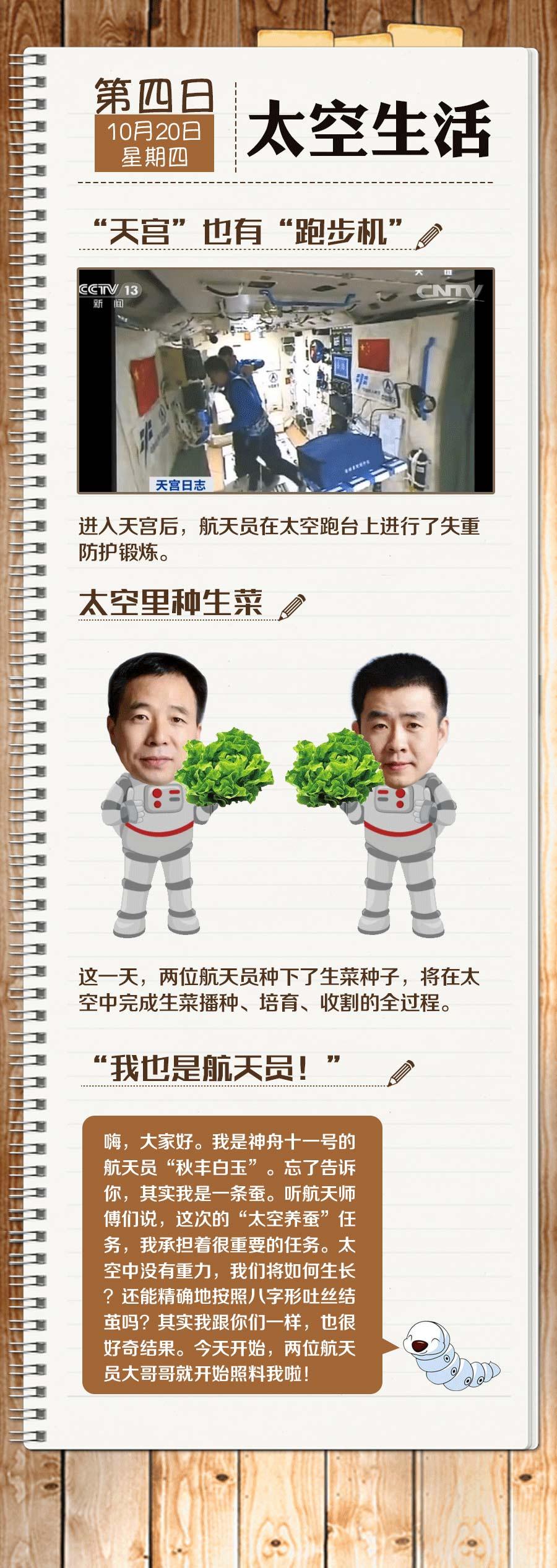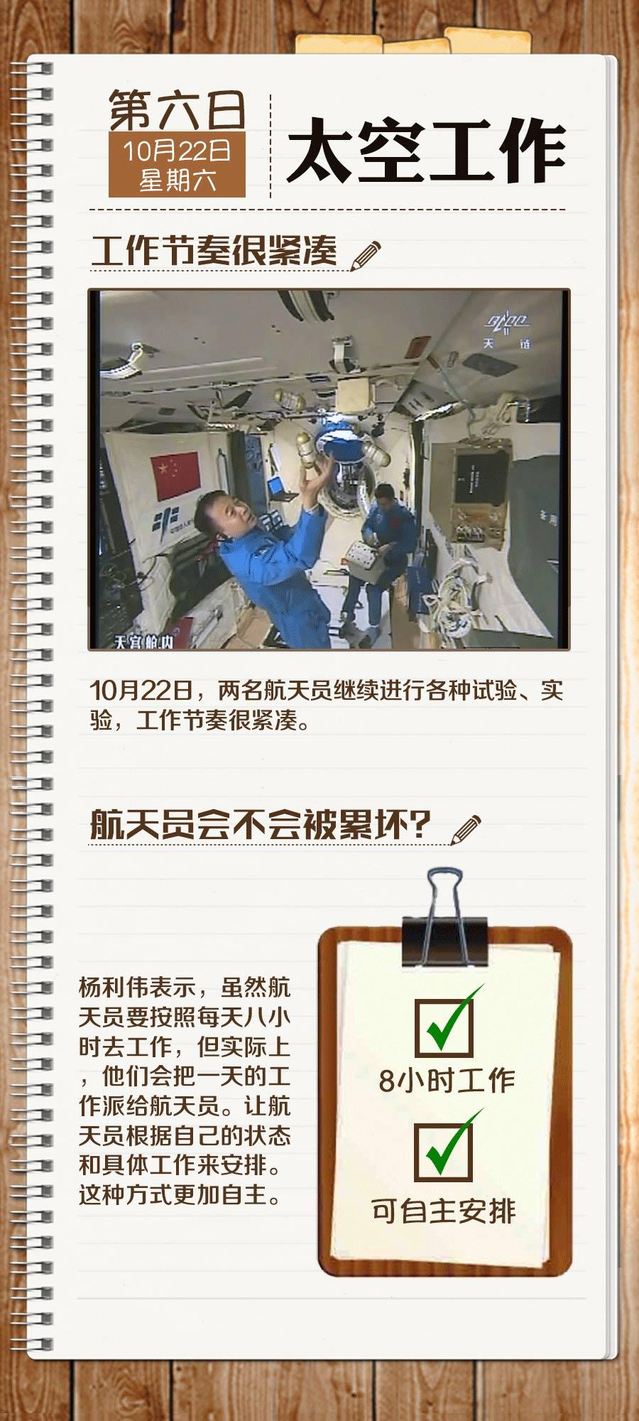 从17日到23日,景海鹏、陈冬已经在太空生活了一周多。这一周多来,只有“天”知道他们在这一周经历了什么,你想知道吗?