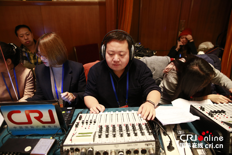 国际台直播团队调试设备。摄影:沈湜