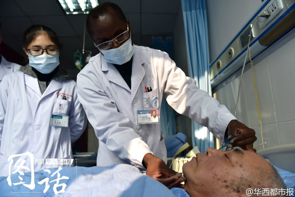 “大爷,是不是感觉好一些了?”迪亚拉医生用四川话问着骆大爷,然后又为骆大爷搭指号脉,观察病人的面相、舌苔,一丝不苟地“望、闻、问、切”……