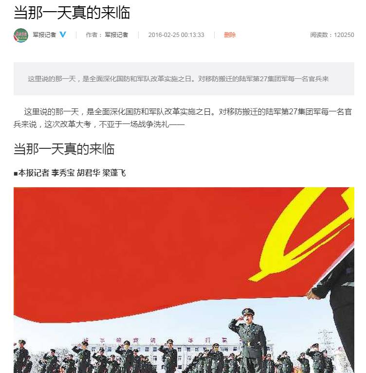 军改大幕开启不久,2015年12月的27日,也就是习近平主席在中央军委改革工作会议上号召全面实施改革强军战略、坚定不移走中国特色强军之路的一个月后,第27集团军最后一批人员装备离开驻地的日子。