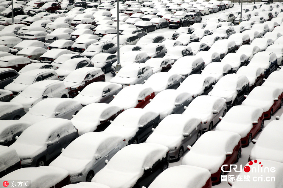 当地时间2016年12月11日,美国芝加哥,奥黑尔国际机场停车场上租赁车辆被积雪覆盖。图片来源:东方IC