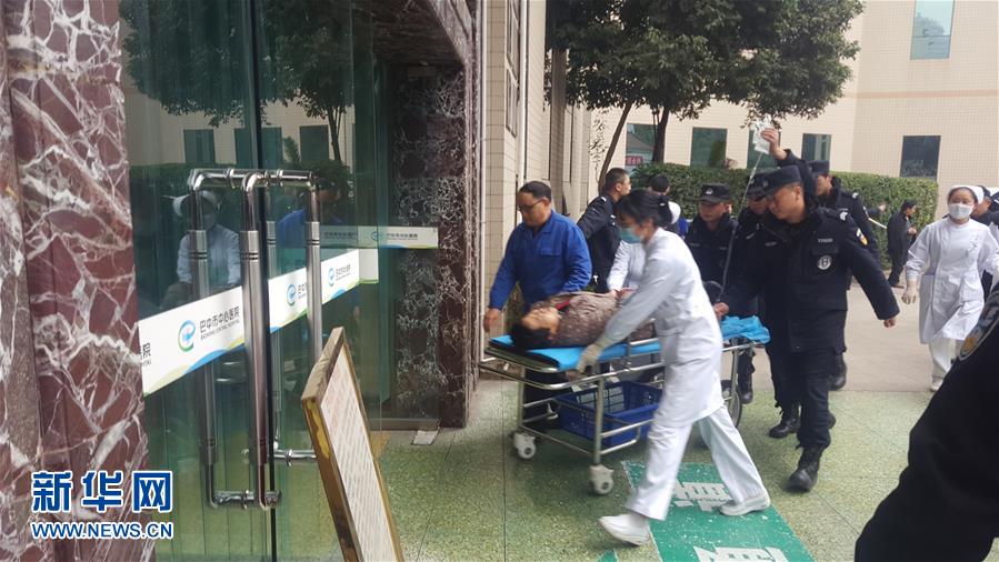 12月18日,医护人员将一名疑似中毒人员转运至四川省巴中市中心医院(手机拍摄)。记者18日从四川省巴中市委宣传部获悉,当日巴州区金碑乡发生一起涉及30名群众的疑似食物中毒事件。目前,已造成2人死亡,3人病情较重。新华社发(新浪微博网友@巴中那些事 提供)