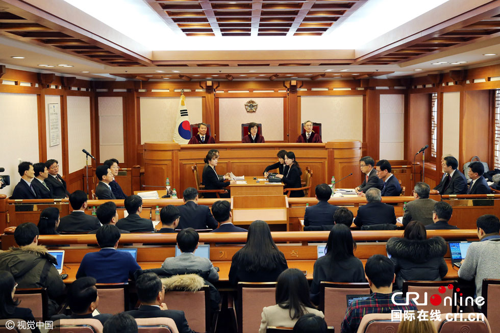 当地时间2016年12月30日,韩国宪法法院对朴槿惠弹劾案进行最后一次预审。图片来源:视觉中国