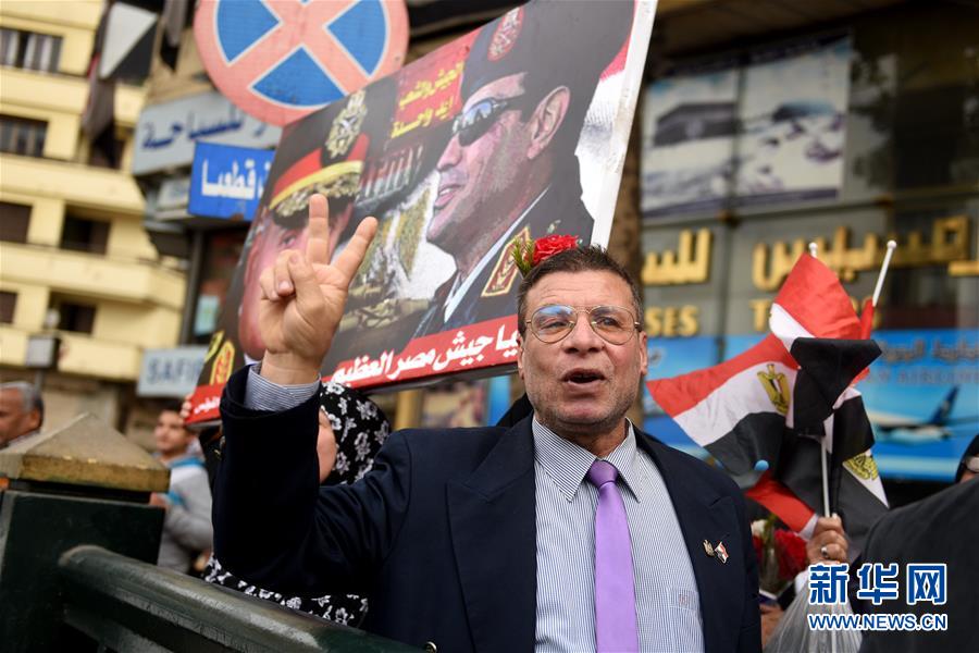 1月25日,埃及总统塞西的支持者在埃及开罗解放广场参加集会。当日是埃及“1·25革命”六周年纪念日,埃及总统塞西支持者在开罗举行集会,表达对塞西及政府的支持。 新华社记者赵丁喆摄