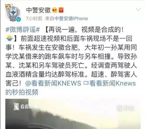 这几天,一则《男子酒驾跑车飙车320码,自拍视频成临终遗言》的视频在网上热传,但经警方证实,前面超速视频和后面车祸现场不是一回事,是由两段视频合成。不管怎样,超速醉驾都害人害己,而后半段的车祸事故导致3人死亡。