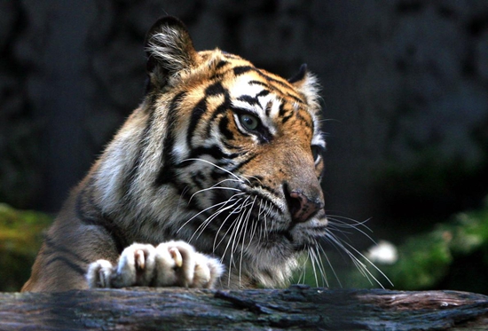 印度尼西亚泗水动物园里极度濒危的苏门答腊虎。