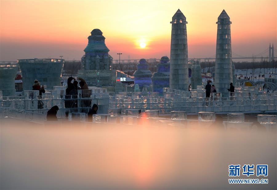 2月7日,游客在哈尔滨冰雪大世界园区游玩拍照。春节长假后,哈尔滨冰雪大世界依旧游人如织,流光溢彩的冰建筑、巧夺天工的冰雕作品和百玩不厌的冰雪娱乐活动,让天南海北的游客流连忘返。新华社记者 王建威摄
