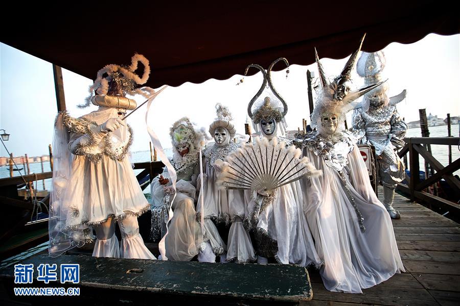 2月12日,在意大利水城威尼斯的圣马可广场,狂欢者摆出造型。 本届威尼斯狂欢节于2月11日开幕,将持续至2月28日。 新华社记者金宇摄