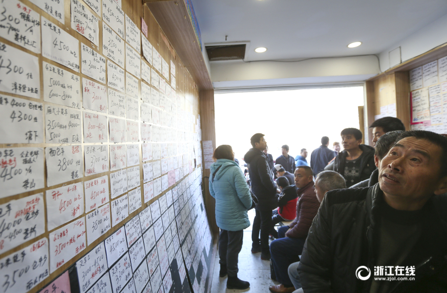 浙江在线2月15日讯(浙江在线通讯员 苏巧将 摄)2月14日,求职者在温州市瓯海区劳务市场找工作。元宵节过后,温州工地、企业全面开工,温州各大招聘市场迎来了求职最高峰。目前,温州市劳务市场上用工缺口最大是普工,不少岗位月薪3000元包吃住,但还是面临着招不到人的尴尬局面。