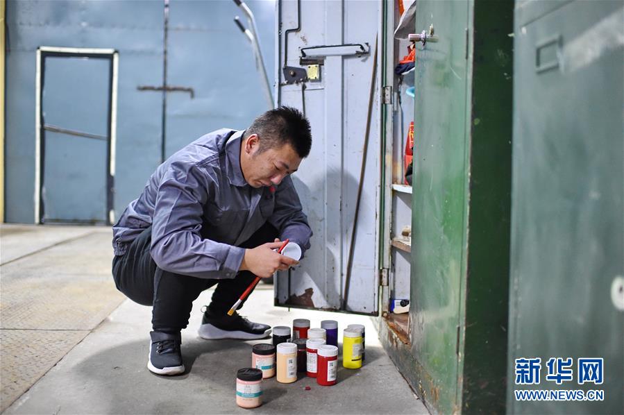 2月17日,王强在长春市朝阳区公交胡同挑选绘画用的颜料。