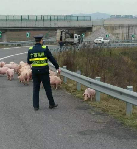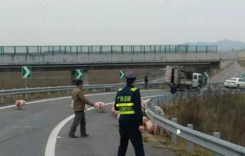 司机驾驶不当货车侧翻 50多头猪崽躺高速公路