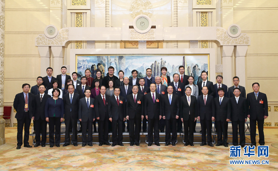 3月13日,中共中央政治局常委、全国政协主席俞正声在北京人民大会堂看望参加全国政协十二届五次会议新闻报道工作的中央主要新闻媒体负责同志和记者代表,向参加大会报道的新闻工作者表示诚挚慰问和衷心感谢。新华社记者 鞠鹏 摄