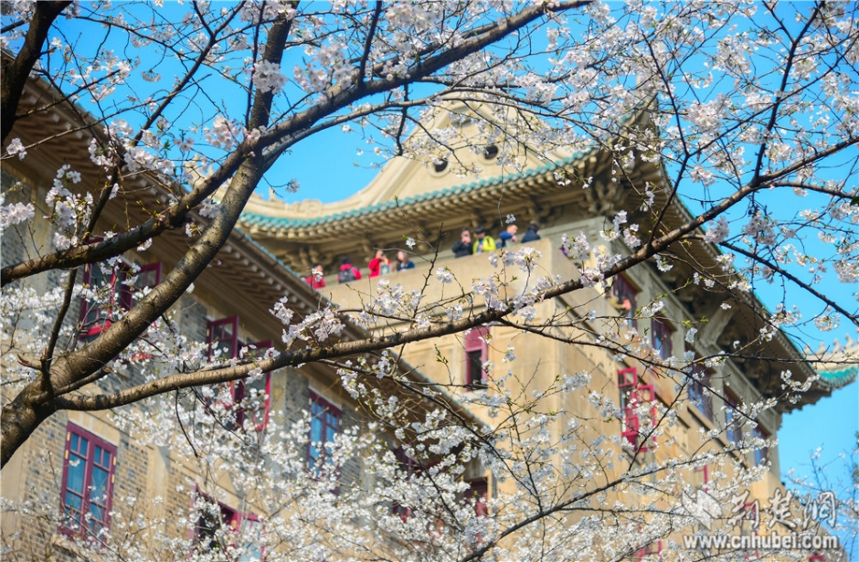 三月雪吹樱,客向珞珈来。3月14日,武汉阳光明媚,天空湛蓝,武汉大学也迎来免费开放赏樱的首日,前来赏樱的游客络绎不绝。记者了解到,当天有近万人预约进校赏花,明后两天限制1.5万人的名额,也已经被预订一空。(图/文 记者王振栋)