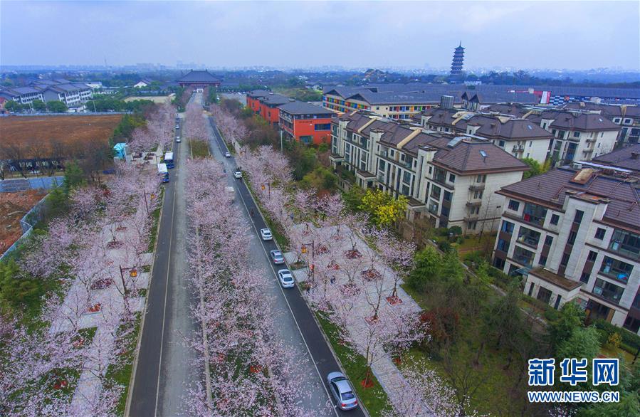 3月23日,江苏扬州“樱花大道”樱花盛开。近日,扬州鉴真图书馆门前的鉴真路“樱花大道”樱花竞相绽放,清香四溢。 新华社发(张卓君 摄)