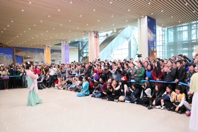 大展最后一天,成都博物馆工作人员上演“敦煌秀”。