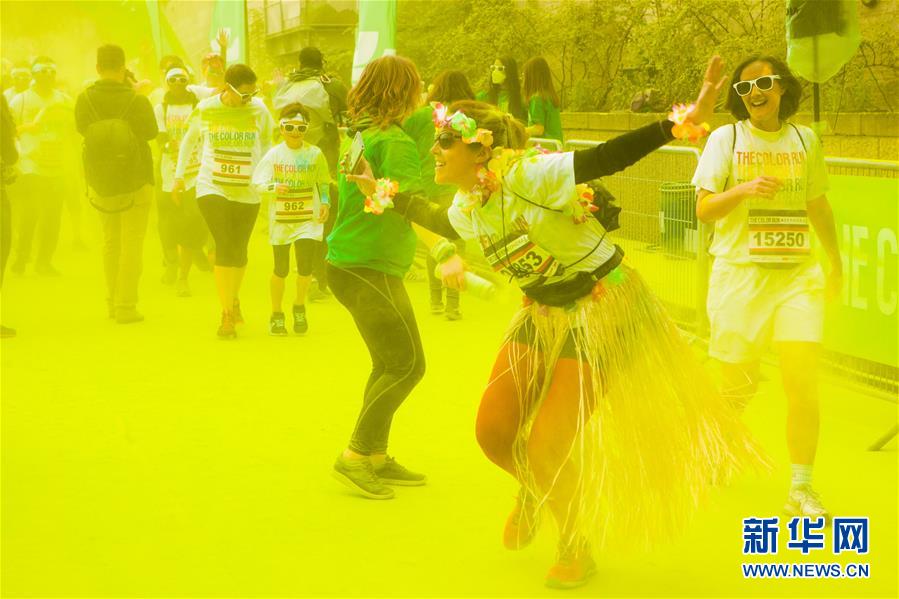4月16日,人们在法国巴黎参加彩色跑。当日,法国巴黎在塞纳河沿岸举行彩色跑活动。 新华社发(丽贝卡·托巴基安摄)