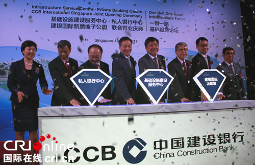 国际在线报道(中国国际广播电台记者 孙牧宁):4月18日,中国建设银行在新加坡举办仪式庆祝建行新加坡基础设施建设服务中心、私人银行中心以及建银国际新加坡子公司正式成立。中国建设银行行长王祖继、中国驻新加坡大使馆临时代办房新文、新加坡教育部长兼交通部第二部长黄志明出席了仪式。
