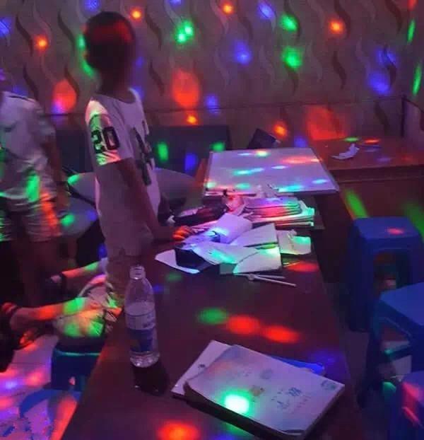 老师带着学生KTV包厢设课堂