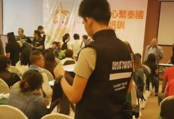 当地媒体报道称,主办方单位向参加培训活动者每人收取2000铢费用,将所有人的手机统一保管,禁止任何人录音录像。警方指,当时共有138人参加,大部分人均没有合法的导游从业员证件,许多外籍人士持观光或学生签证入境,按法律规定不得从事导游行业,个别人甚至逾期居留。