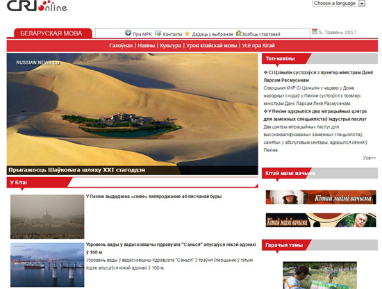国际在线白俄罗斯文网(网址:belarusian.cri.cn)于2009年9月23日上线,是目前中国开设的唯一一家白俄罗斯文新闻资讯网站。该网站的宗旨是搭建促进白俄罗斯民众客观了解中国的有效信息平台。