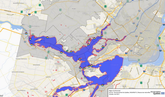 蒙特利尔(Montreal)和拉瓦勒(Laval)在内的几个城市已经宣布了紧急状态,目前为止,有146个市镇被淹没,1520人被迫离开家园。