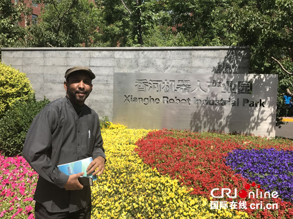 伊普拉欣在香河机器人产业园采访